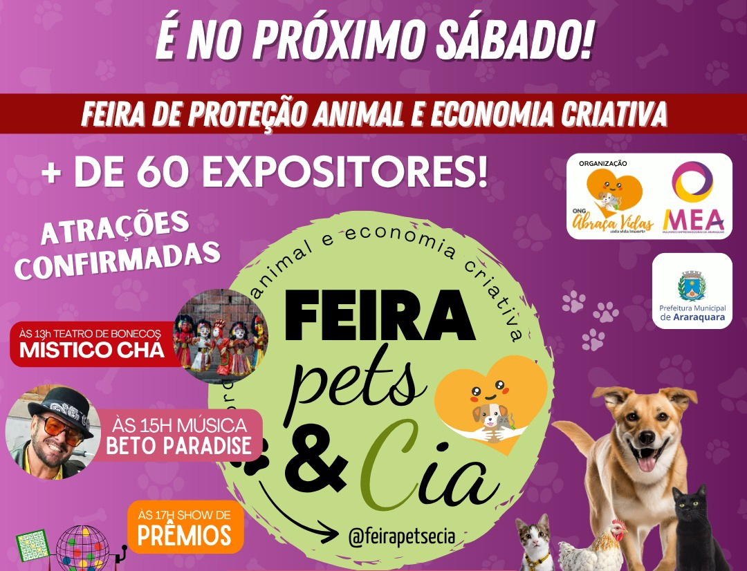 Realizada pelo Coletivo Abraça Vidas, com apoio da Prefeitura de Araraquara, por meio da Secretaria Municipal de Desenvolvimento Econômico e da Subsecretaria do Trabalho e da Economia Criativa e Solidária, a feira reúne expositores com produtos de gastronomia, bem-estar animal, além de grupos e protetores independentes dedicados à causa animal no município. Nesta edição, a programação também conta com atração musical promovida pela Secretaria Municipal da Cultura e Fundart.