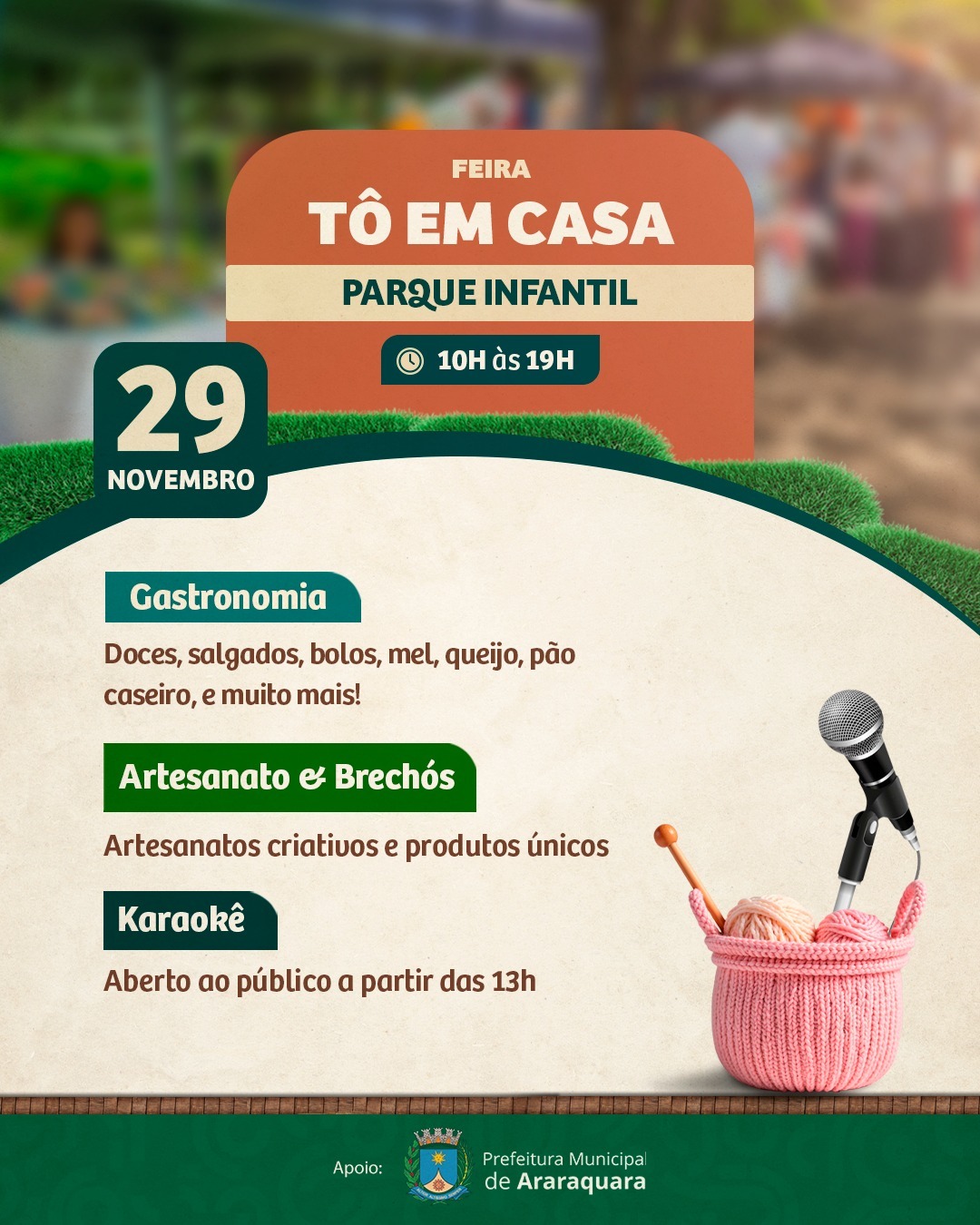 Criada pelo Coletivo Tô em Casa e realizada em parceria com a Prefeitura de Araraquara, por meio da Secretaria Municipal de Desenvolvimento Econômico e da Subsecretaria do Trabalho e da Economia Criativa e Solidária, a iniciativa vem ganhando força como vitrine da produção local. A feira reúne pequenos empreendedores, artesãos e cozinheiros que encontram ali um ponto de circulação importante no coração da cidade.