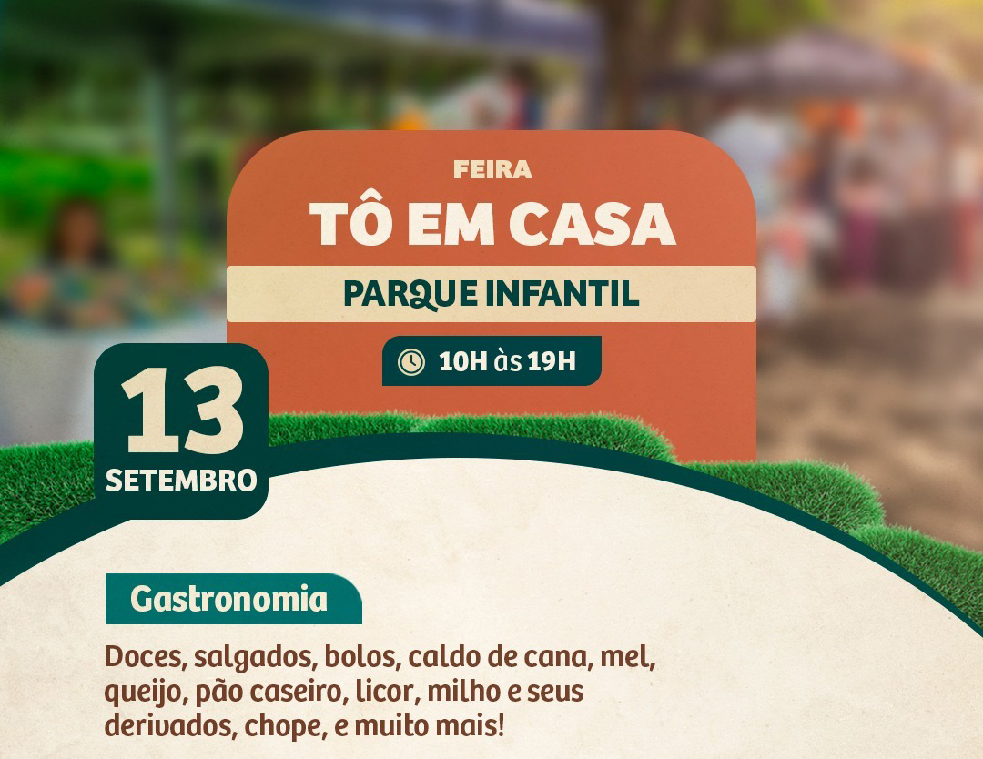 Neste sábado, 13 de setembro, o Parque Infantil se transforma novamente em ponto de encontro para toda a família com a 171ª edição da Feira “Tô em Casa”. Das 10h às 19h, o público poderá desfrutar de um dia repleto de sabores, criatividade em um ambiente gratuito e acolhedor no coração da cidade.