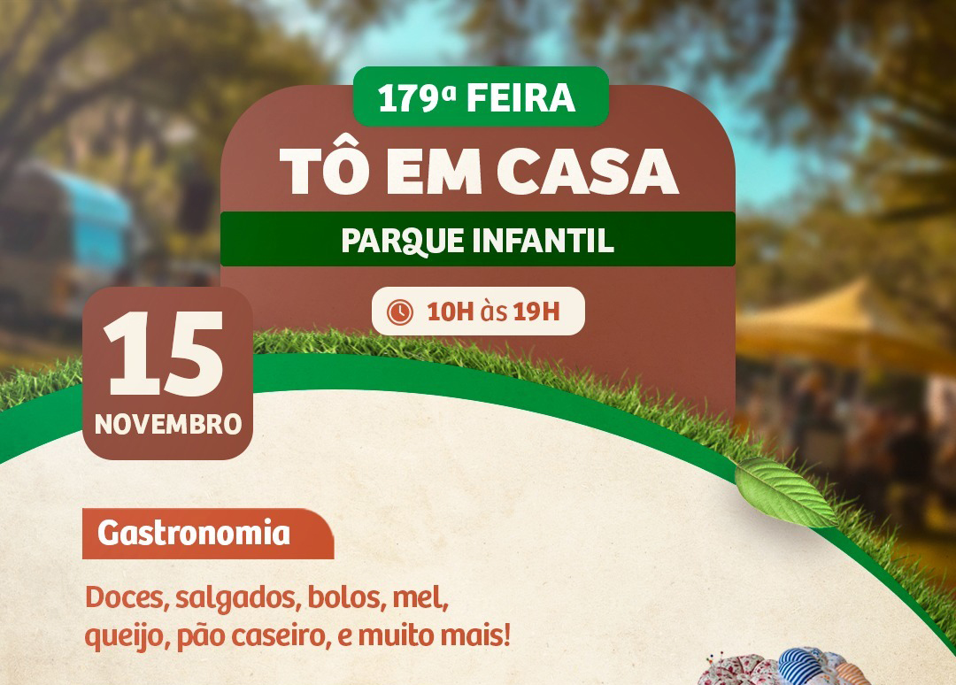 Neste sábado (15), o Parque Infantil, será palco de mais uma Feira “Tô em Casa”. Com entrada gratuita e programação das 10h às 19h, a feira reúne estandes variados, em um espaço aberto e acessível.