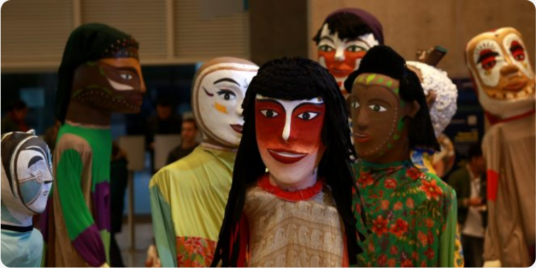 O cortejo reúne bonecões e banda em um encontro lúdico com crianças de todas as idades. Além dos personagens gigantes, estarão disponíveis bonecões menores e burrinhas para que o público infantil possa experimentar e brincar com os adereços.