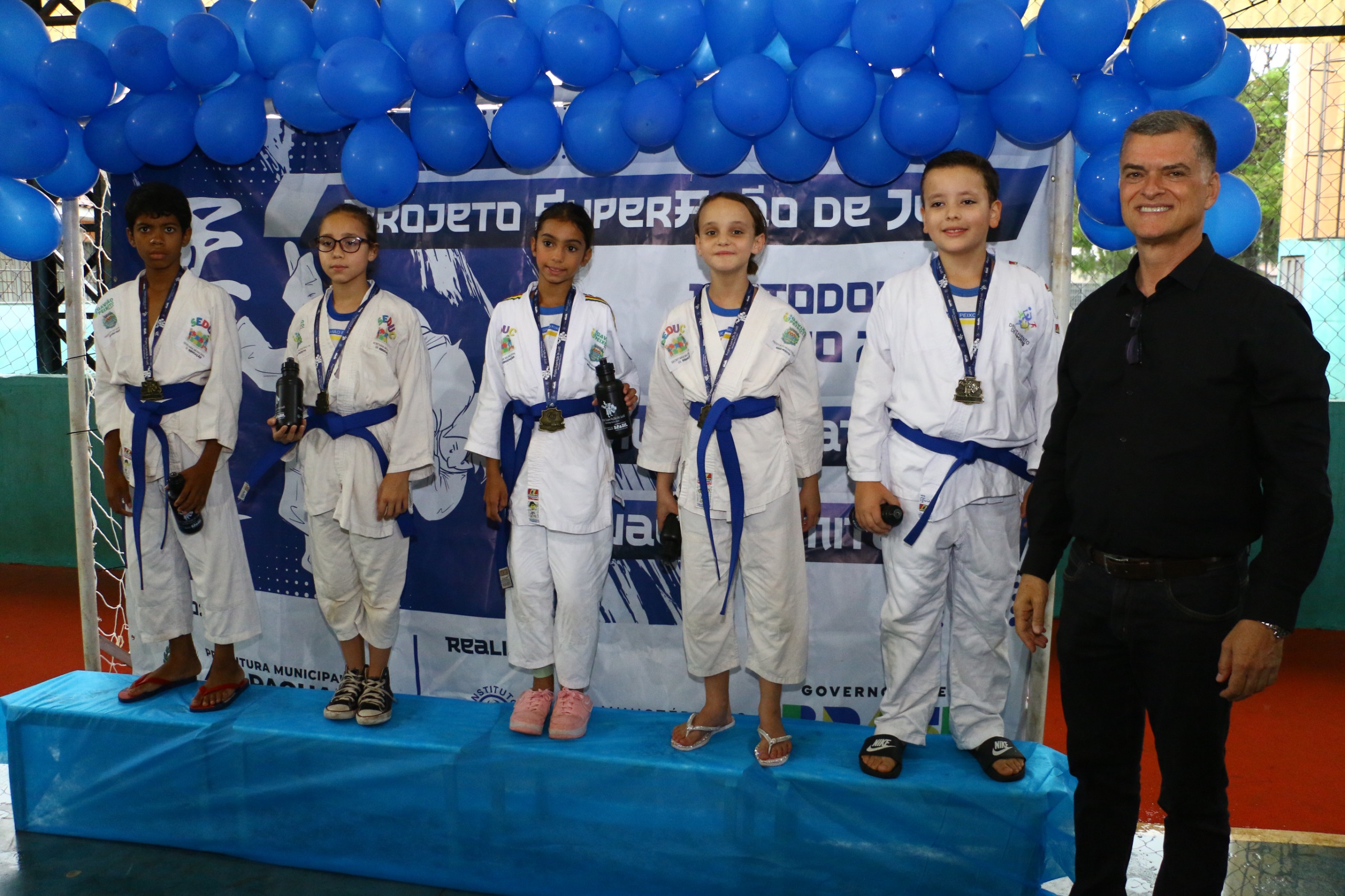 Durante a manhã, pais, alunos e professores participaram de um grande aulão, com atividades esportivas, música e momentos de descontração. Em um gesto simbólico, o pódio projetado sem degraus reforçou a mensagem de que no esporte, todos podem ser campeões. Todas as crianças receberam medalhas e brindes, celebrando o esforço, a disciplina e o espírito de equipe.