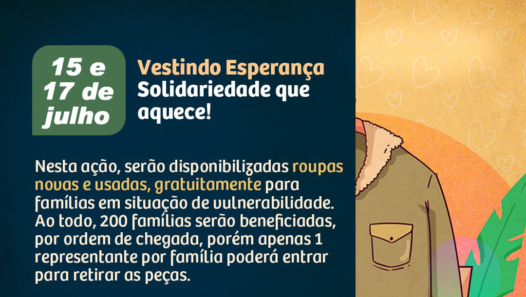 O Fundo Social de Solidariedade de Araraquara promoverá, nesta semana, a ação solidária “Vestindo Esperança”, que visa atender famílias em situação de vulnerabilidade com a distribuição gratuita de roupas usadas. A iniciativa será realizada em dois locais diferentes da cidade, beneficiando ao todo 400 famílias.