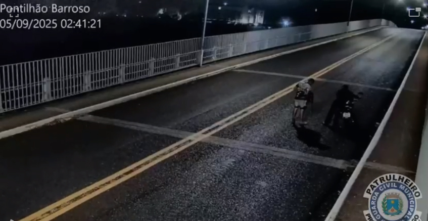 Os GCMs da Central de Monitoramento avistaram pelas câmeras dois suspeitos empurrando uma moto, sendo que um deles estava sem capacete, e imediatamente acionaram as equipes de serviço para a abordagem.