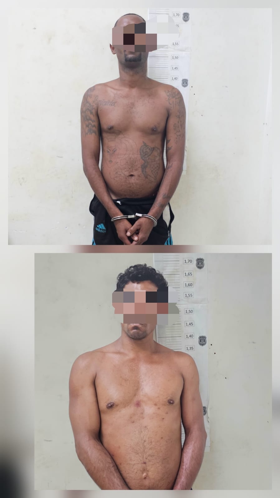Diante dos fatos, novas equipes da Guarda Civil Municipal iniciaram diligências e conseguiram localizar os autores na Praça do Santana. Foi dada voz de prisão aos envolvidos, sendo necessário o uso de técnicas de imobilização e algemas para contê-los, diante da resistência apresentada.