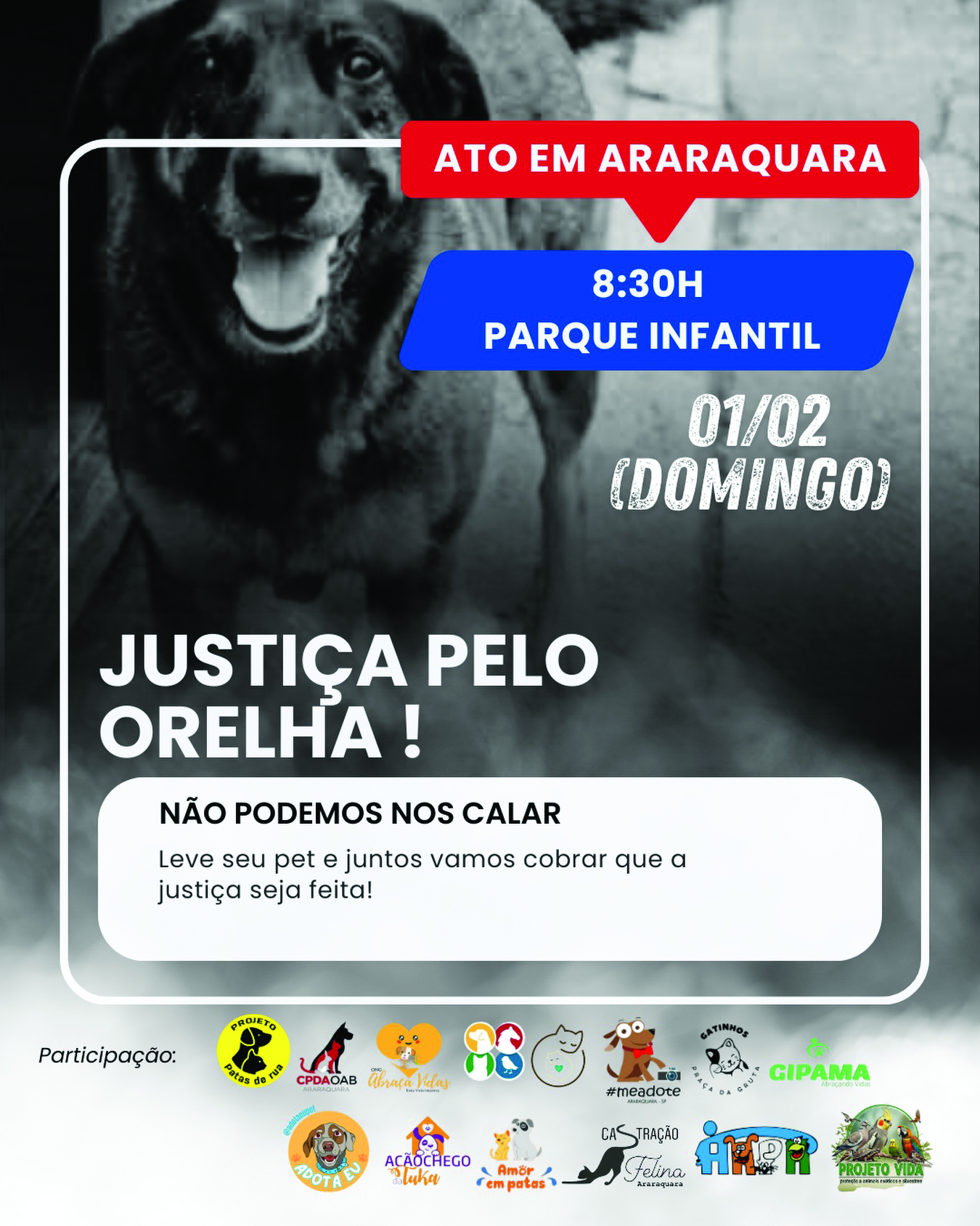 Orelha foi brutalmente assassinado. Sua morte não pode ser apenas mais um caso esquecido. Diante dessa crueldade, a sociedade se une para dizer basta e exigir justiça, respeito e punição exemplar aos maus-tratos contra animais.