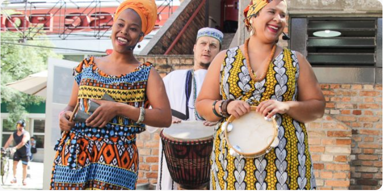 Entre músicas, tambores e danças, as crianças são convidadas a entrar na roda e celebrar as histórias dos Orixás de forma lúdica, colorida e cheia de energia. A vivência mistura contação de histórias, brincadeiras e música ao vivo.