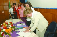 Na assinatura do Convênio, também estavam presentes Gisele Rocha Côrtes, gerente do Centro de Referência da Mulher “Heleieth Saffioti” e Maria Rosenice Nogueira, Coordenadora da Casa Abrigo “Alaíde Kuranaga”.