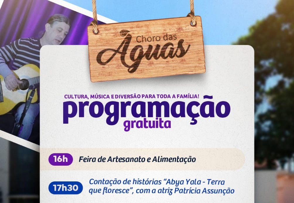 As atrações para toda a família estão garantidas no Choro das Águas deste domingo (12), a partir das 16h na Praça do Daae – Fonte Luminosa. A programação realizada pela Prefeitura de Araraquara, por meio da Secretaria Municipal da Cultura e Fundart, é gratuita e apresenta: feira de artesanato; contação de histórias “Abya Yala, Terra que floresce – Amalá”, com a atriz Patrícia Assunção; e apresentação musical “Violão Brasileiríssimo”, com Anderson “Alemão” Senapeschi.