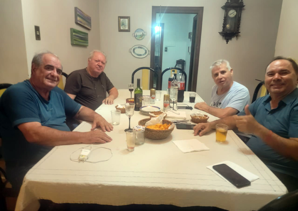 Nesta edição, a foto da lembrança e homenagem ao amigo e jornalista Geraldo Polezze e a confraternização na residência da Angélica Bombarda, na última segunda feira com os amigos Antônio Coca Pinto Ferraz, Antônio Gabriel, Padre Fernando Fraga, João Luiz Ultramari e com meu irmão de leite Beto Placo (irmão de leite é um parentesco que nasce do ato primitivo de nutrição e cuidado, onde uma mãe amamenta um filho que não é biologicamente seu, seja por necessidade ou afeto), recordando tantas coisas, como o terreno do avô dele Daniel que vendeu e onde foi construído o Cine Coral; o primeiro grupo de escoteiros de Araraquara, comandado pelo Sr. Toninho, funcionário da Padaria Lima, auxiliado por Armando Clemente. No último domingo houve a confraternização e aniversário na Fazenda do Luiz Antônio Stuchi, com o famoso peixe feito pelo Marcão da Família Freitas.