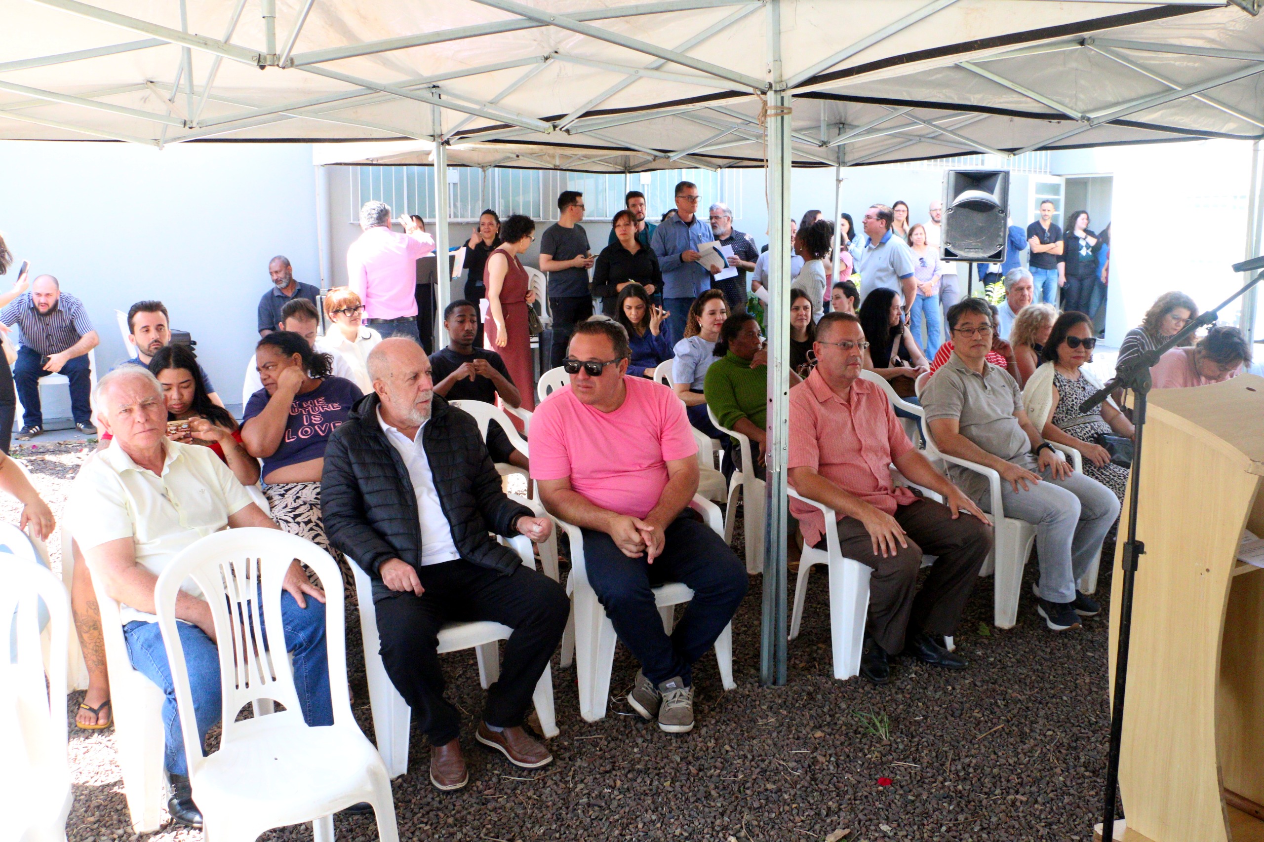 A médica da Família e Comunidade, Dra. Yhaslen Cavalieri Rocha, profissional mais antiga da unidade, foi anfitriã da cerimônia. Também foi prestada uma homenagem especial ao Prof. Dr. Tatsuko Sakima, que dá nome à unidade e faleceu em 2014. A homenagem foi recebida pelo filho, Maurício Sakima, presente no evento.