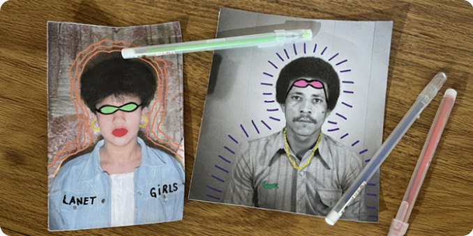 A oficina convida o público a intervir em reproduções dos “Retratos do Morro”, conectando as imagens da exposição a símbolos e signos do funk e das periferias de hoje. A atividade propõe um diálogo visual entre passado e presente e faz parte do projeto “Estéticas do Fluxo”.