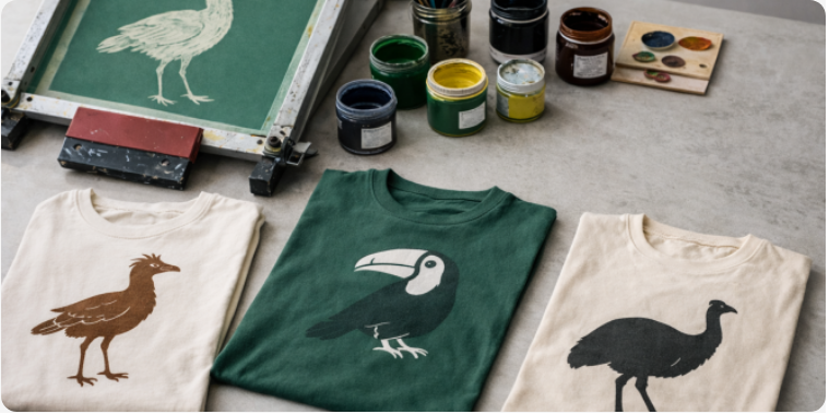 A oficina convida os participantes a explorar a técnica da serigrafia na criação de estampas inspiradas nos animais do Cerrado, transformando a diversidade das espécies em composições visuais. Cada participante pode trazer peças próprias para estampar, além de utilizar flâmulas de algodão cru disponibilizadas durante a atividade.