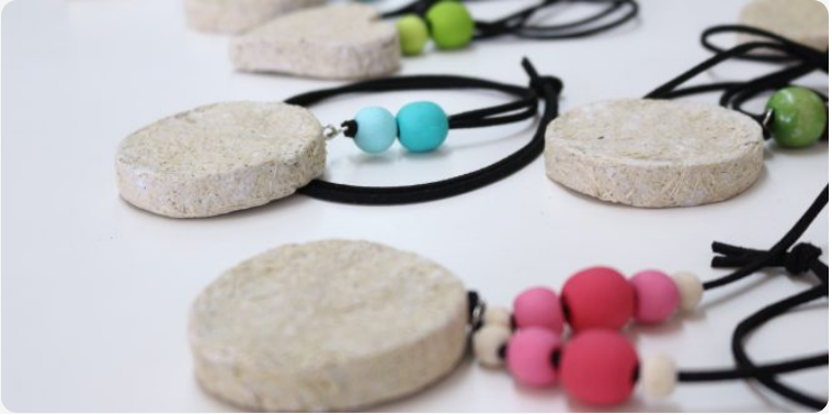 A atividade propõe a criação de colares artesanais a partir da fibra do bagaço da cana-de-açúcar, um resíduo natural ressignificado por meio do design, do fazer manual e da criatividade.