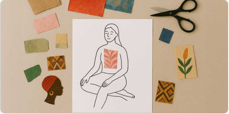 Trabalhe a prática da colagem para ilustrar e dar identidade a croquis previamente distribuídos, trabalhando a ideia de identificação com elementos culturais, etnias, entre outras referências.