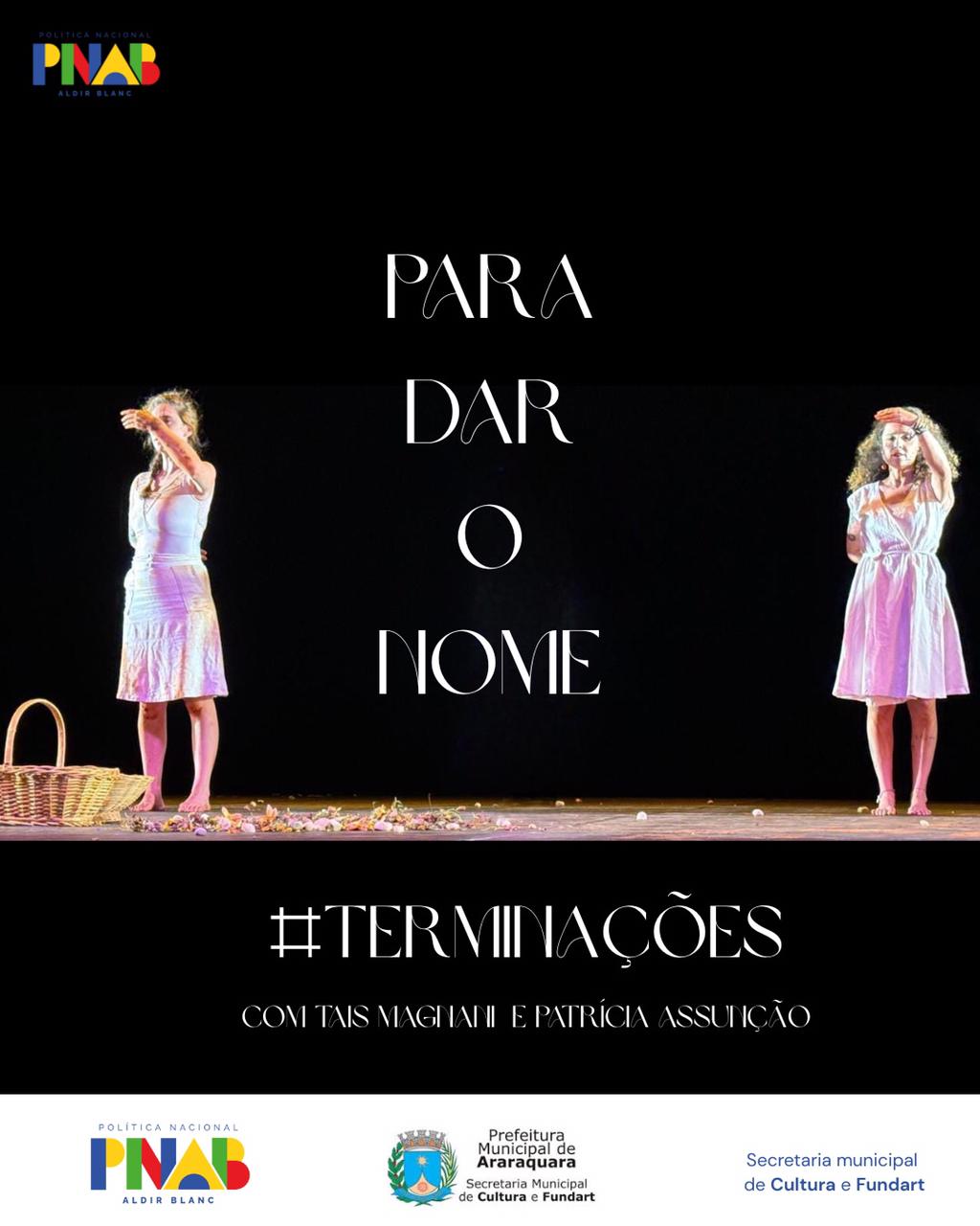 Tais Magnani e Patrícia Assunção são as intérpretes criadoras do espetáculo “Para dar o nome #terminações” em cartaz nesta sexta-feira (17) no Palacete das Rosas Paulo A.C. Silva, às 19 horas. A apresentação é gratuita e os ingressos serão distribuídos meia hora antes do início.