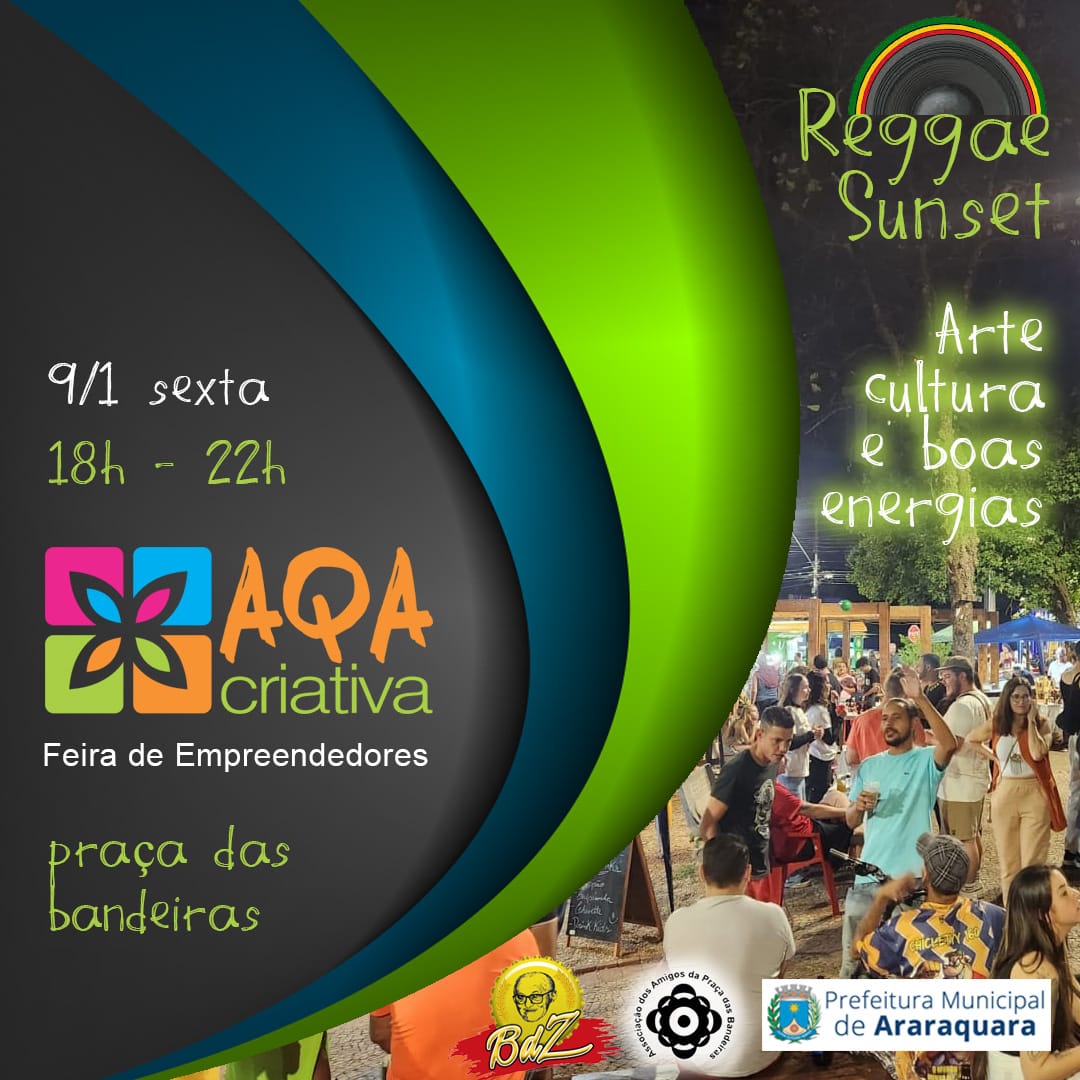 Reggae e viola caipira estão na programação gratuita da feira Aqa Criativa, realizada na Praça das Bandeiras nesta sexta e também no sábado, 9 e 10 de dezembro, das 18h às 22h.