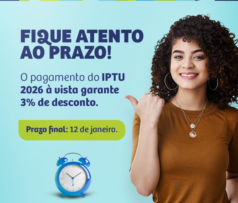 Para acessar o IPTU 2026, basta clicar na guia “Cidadão” e, em seguida, em “IPTU”. O documento também está disponível na “Central de Serviços”, no link “2ª via do IPTU”, na página inicial do site.