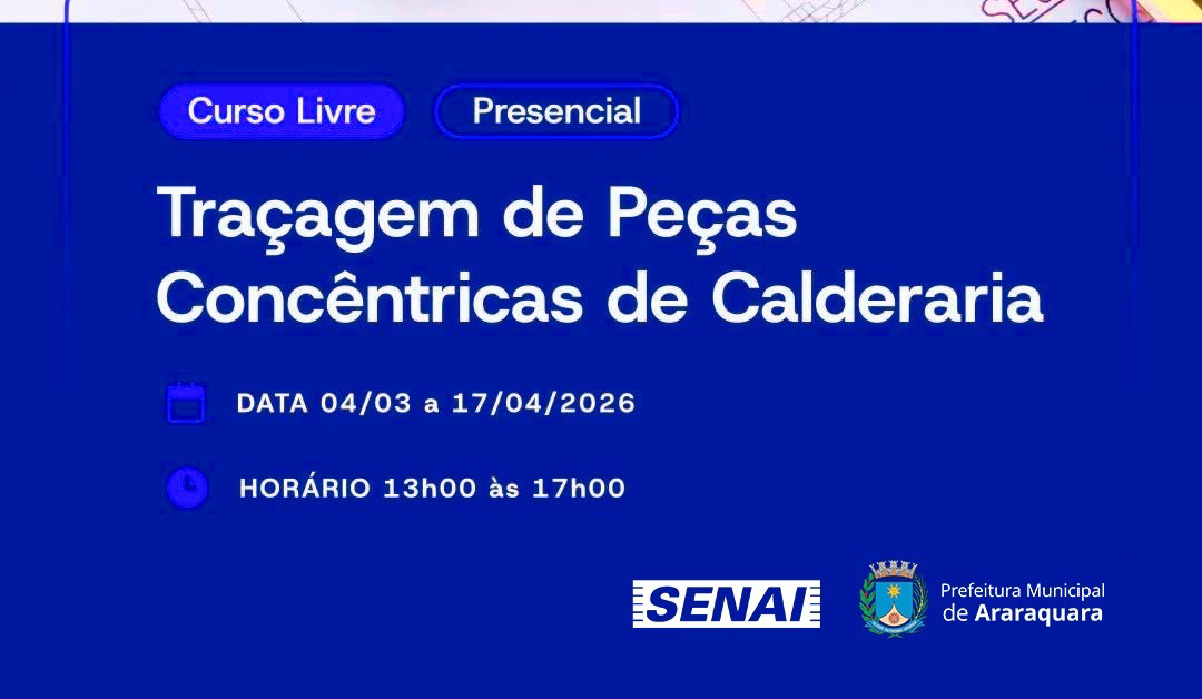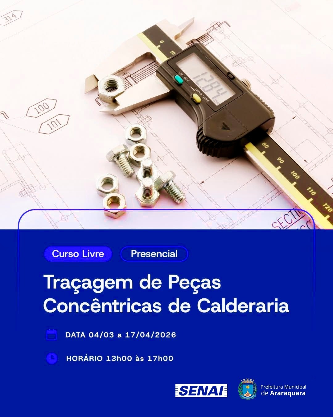 A Prefeitura de Araraquara, em parceria com o Serviço Nacional de Aprendizagem Industrial, está com matrículas abertas para o curso gratuito de Traçagem de Peças Concêntricas de Caldeiraria, com carga horária de 80 horas.