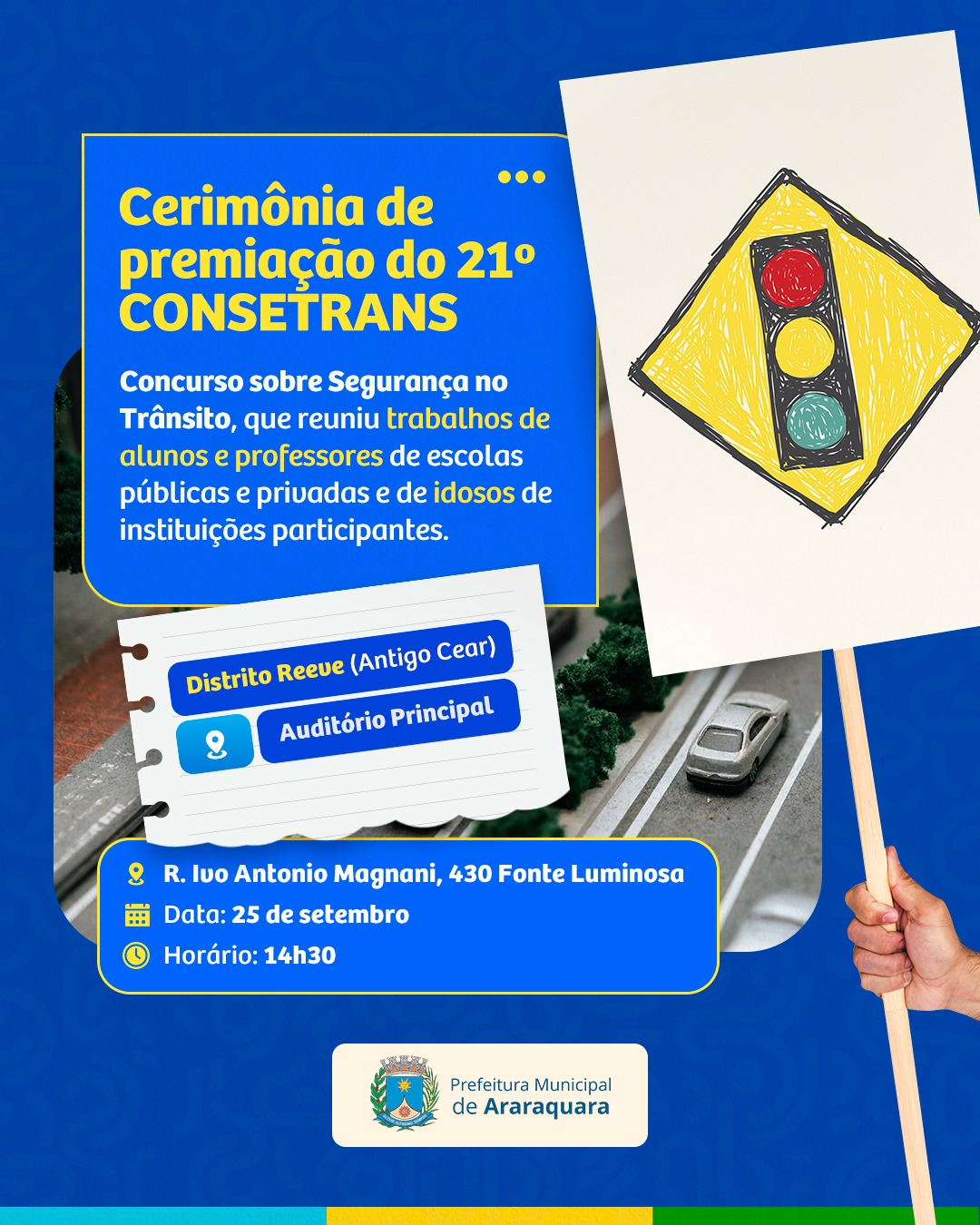 O Consetrans é realizado anualmente, e tem como objetivo promover a segurança no trânsito por meio da produção de materiais educativos e artísticos, valorizando o trabalho das escolas, instituições e alunos participantes. O trabalho do Consetrans é desenvolvido ao longo do ano todo – em 2025 o órgão já ofereceu palestras para mais de 14 mil alunos em Araraquara.