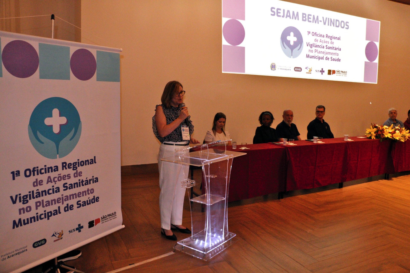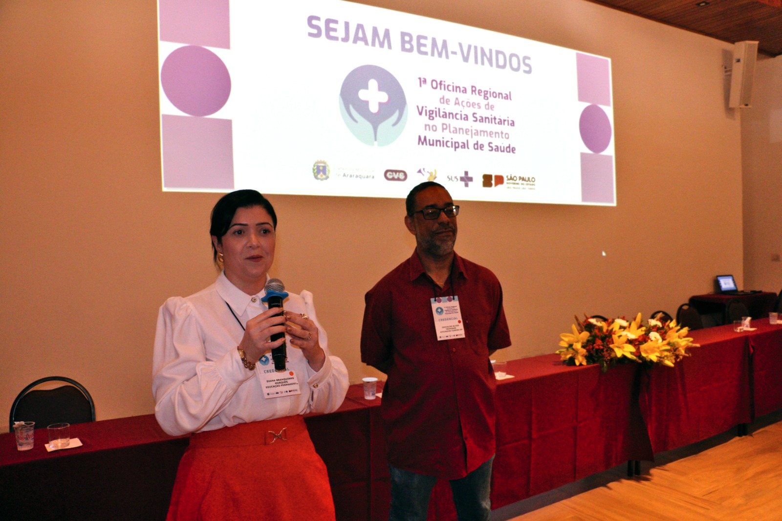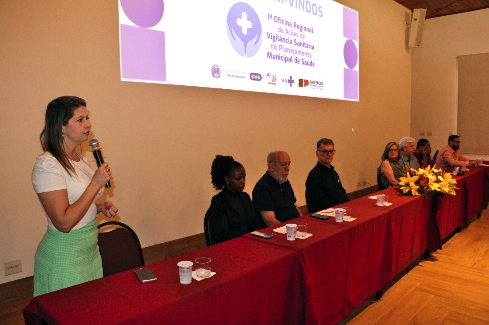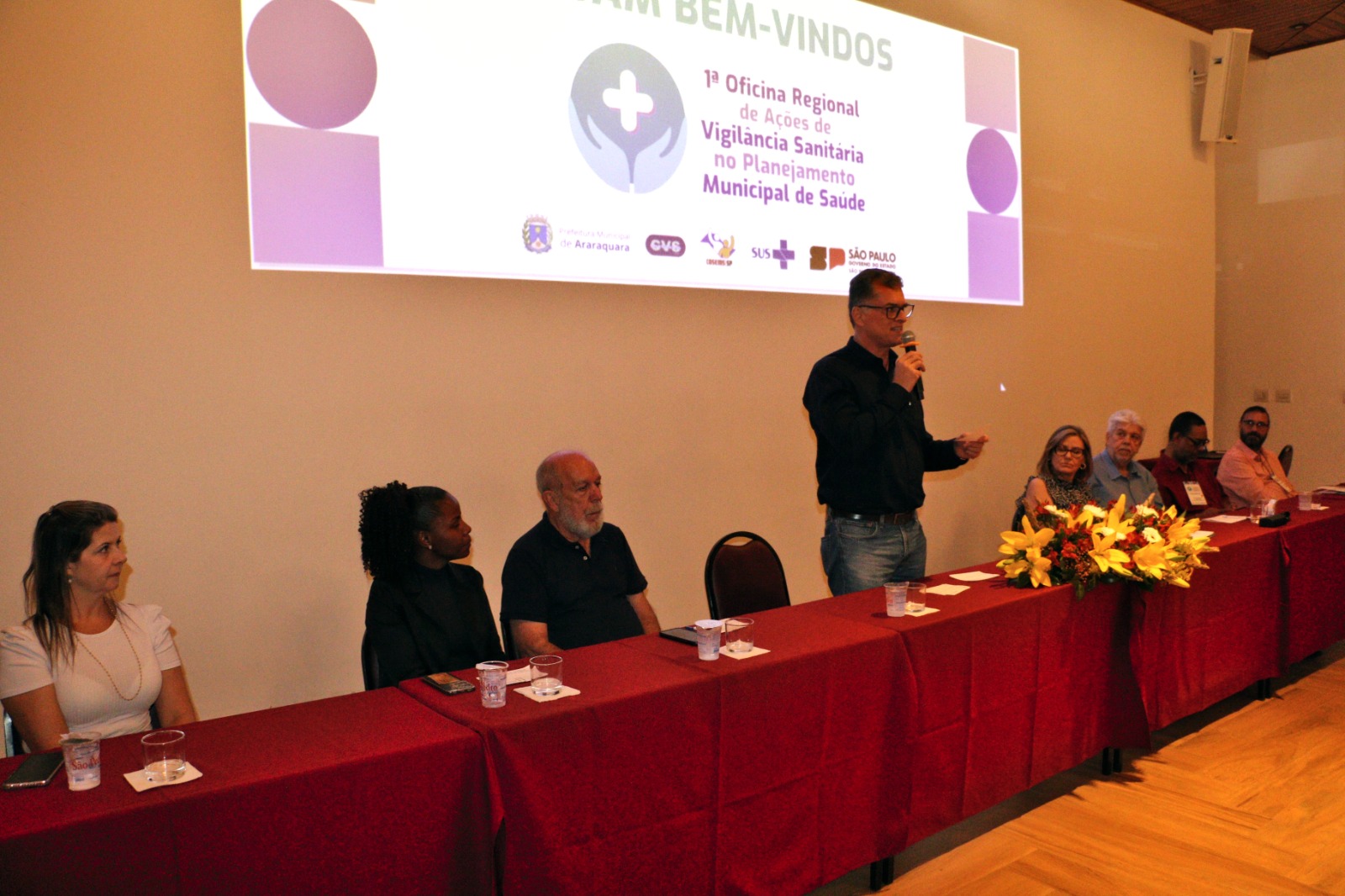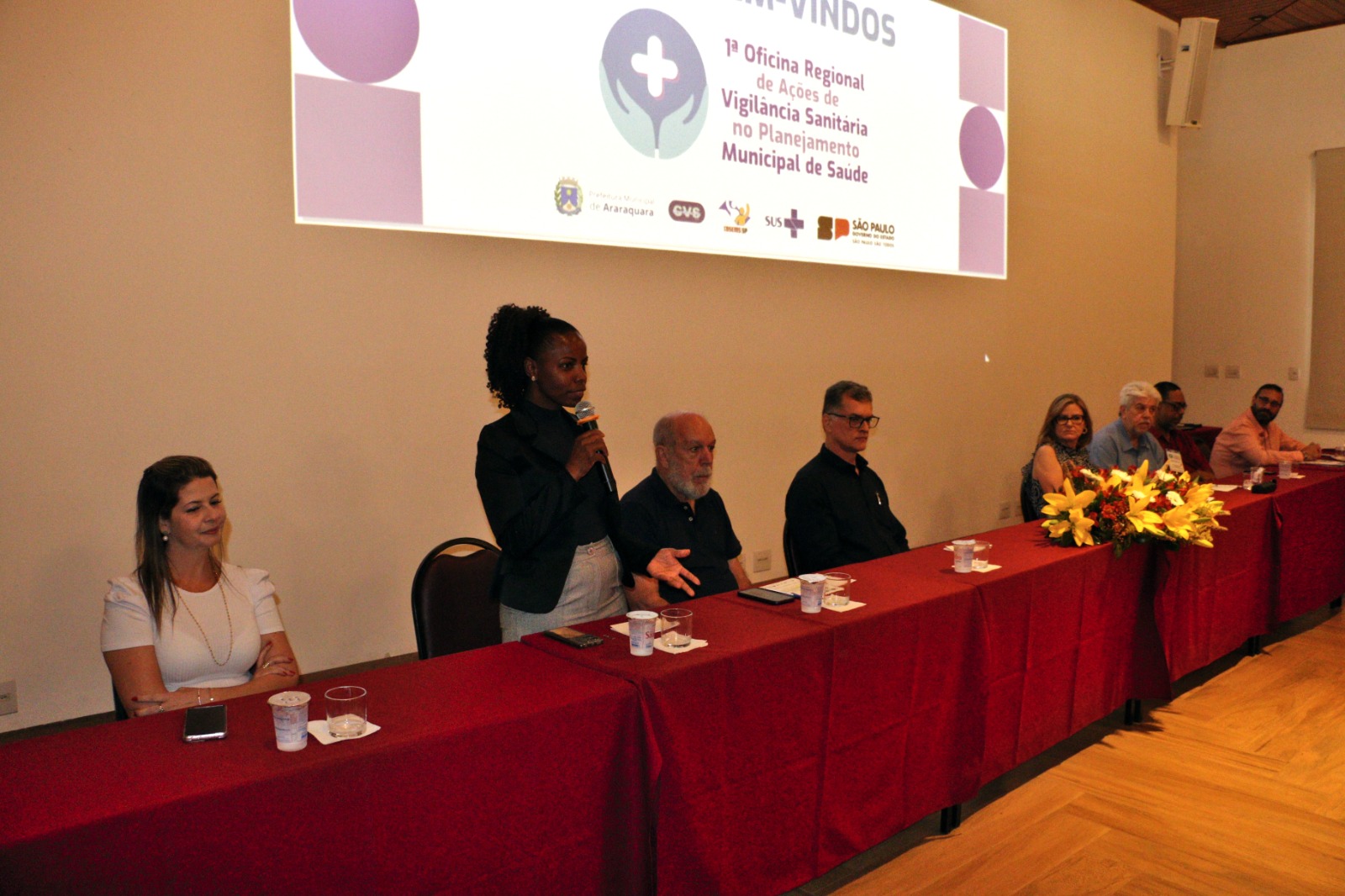 Também estiveram presentes na abertura do evento as seguintes autoridades a Diretora do Grupo de Vigilância Sanitária – GVS XIII, Ana Lucia Spagnol Bose; o representante do COSEMS-SP, Bruno Tessari Cobra; representando a Câmara Municipal de Araraquara, o vereador, Marcão da Saúde (MDB); a vice-prefeita e Secretária de Desenvolvimento Social, Meire Laurindo; a Secretária Municipal de Saúde interina e Diretora Executiva da FunGOTA de Araraquara, Emanuelle Laurenti; a Secretária Municipal de Saúde de Ibitinga, Queila Teruel Pavani; representando o Departamento de Vigilância em Saúde de São Carlos, Denise Mello Martins Gomide, Diretora Regional de Tabatinga SP, Roseane Zamarenho Beti e o secretário de Saúde de Matão, Orivaldo Ademir Reguin.