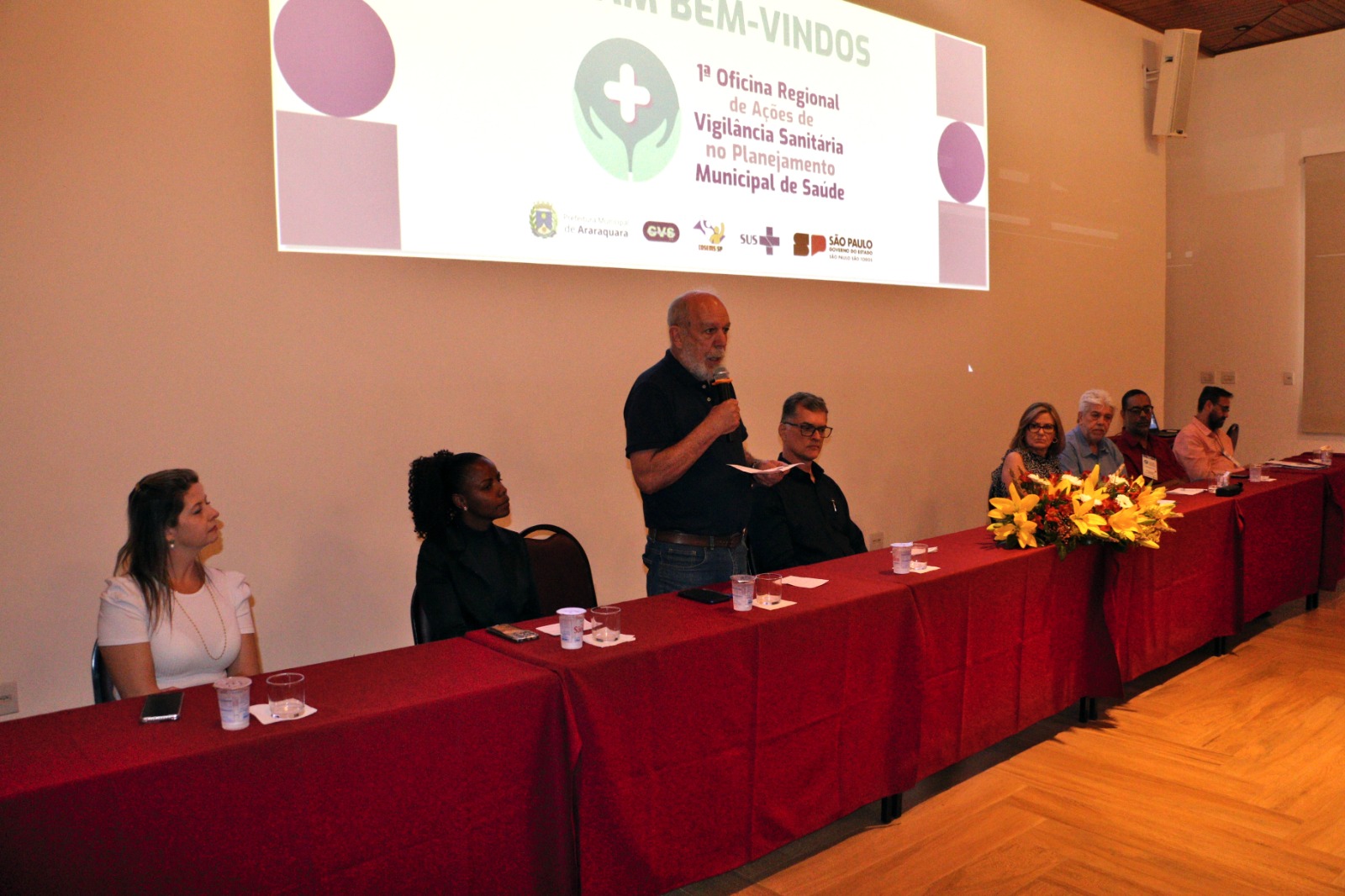 Também estiveram presentes na abertura do evento as seguintes autoridades a Diretora do Grupo de Vigilância Sanitária – GVS XIII, Ana Lucia Spagnol Bose; o representante do COSEMS-SP, Bruno Tessari Cobra; representando a Câmara Municipal de Araraquara, o vereador, Marcão da Saúde (MDB); a vice-prefeita e Secretária de Desenvolvimento Social, Meire Laurindo; a Secretária Municipal de Saúde interina e Diretora Executiva da FunGOTA de Araraquara, Emanuelle Laurenti; a Secretária Municipal de Saúde de Ibitinga, Queila Teruel Pavani; representando o Departamento de Vigilância em Saúde de São Carlos, Denise Mello Martins Gomide, Diretora Regional de Tabatinga SP, Roseane Zamarenho Beti e o secretário de Saúde de Matão, Orivaldo Ademir Reguin.