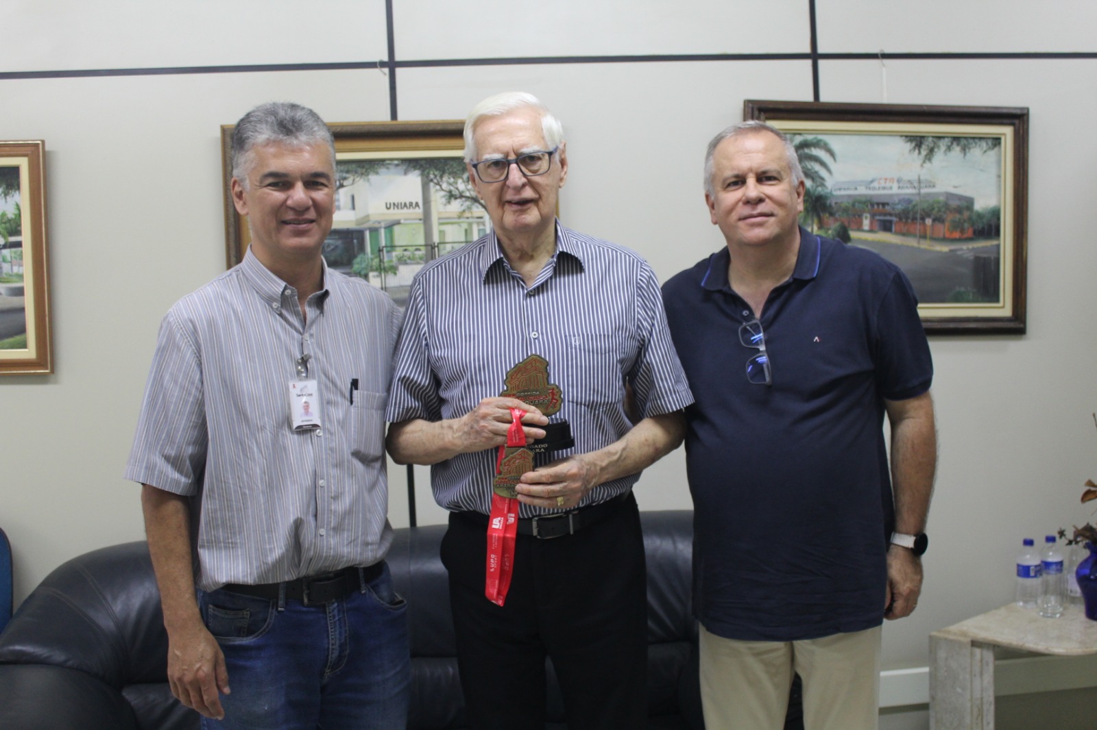 Durante o encontro, Jéferson Yashuda entregou o troféu e a medalha personalizada da corrida, como forma de reconhecimento pelo apoio da Uniara ao evento, realizado no dia 27 de setembro, cujo objetivo foi arrecadar recursos para a reforma do setor de Pediatria do hospital.