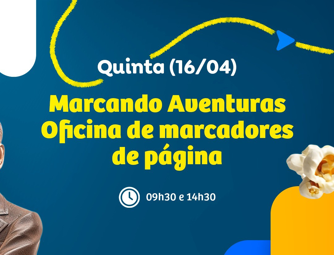 - 9h30 e 13h30: “Marcando Aventuras”, com oficina criativa de confecção de marcadores de páginas personalizados