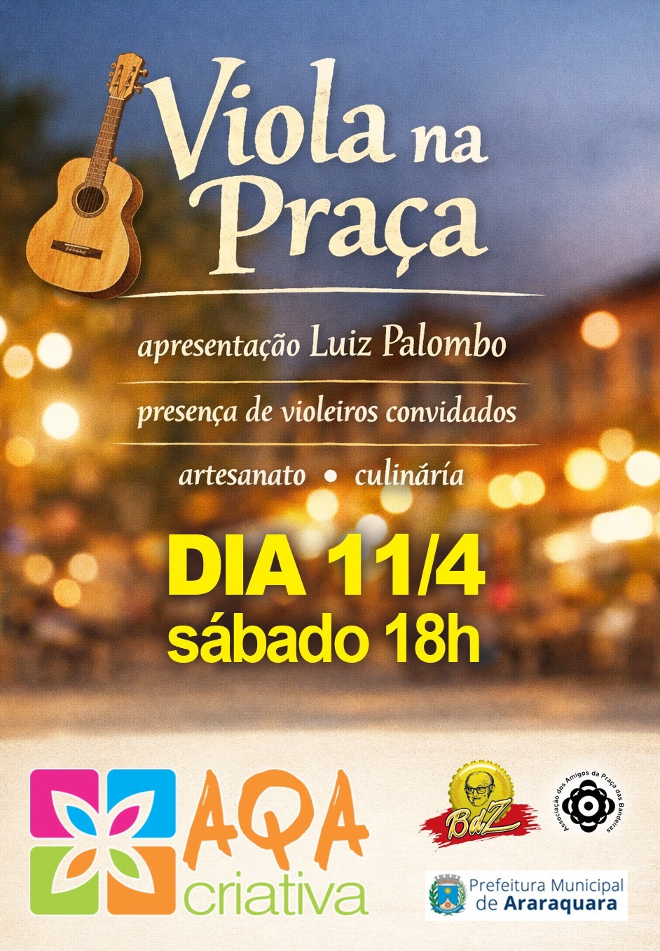 O “Viola na Praça” apresenta música caipira e violeiros da cidade e região, além do “Palco Livre”, sob a apresentação de Luiz Palombo, com os artistas que se inscreverem na hora.