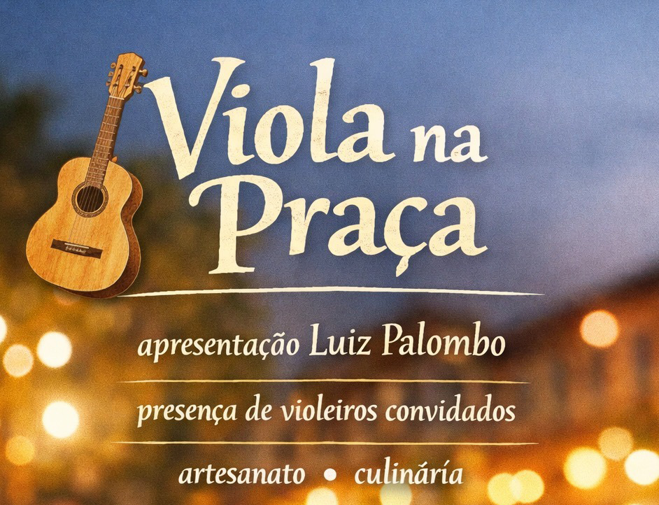 O “Viola na Praça” apresenta música caipira e violeiros da cidade e região, além do “Palco Livre”, sob a apresentação de Luiz Palombo, com os artistas que se inscreverem na hora.