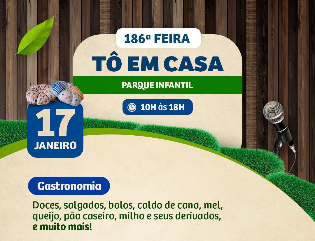 Neste sábado (17), o Parque Infantil recebe mais uma edição da Feira Tô em Casa, com entrada gratuita e programação das 10h às 18h. O evento acontece em um espaço aberto, acessível, e reúne uma variedade de estandes.