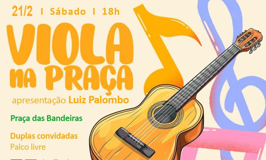 A feira reúne expositores de artesanato, brechós, vinil e praça de alimentação, além da programação do “Viola na Praça”, com música caipira e violeiros da cidade e região, além do “Palco Livre”, sob a apresentação de Luiz Palombo, com os artistas que se inscreverem na hora.