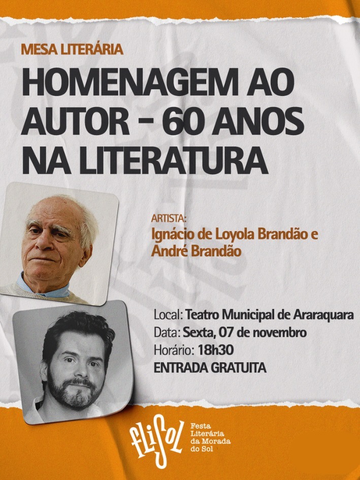 A programação completa da FliSol pode ser conferida no site do evento: www.flisol.com.br. A Festa Literária da Morada do Sol é uma realização do Ministério da Cultura e Instituto Colibri, em parceria com a Prefeitura de Araraquara por meio da Secretaria Municipal da Cultura e Fundart, e da Secretaria Municipal da Educação. Com parceiros e apoiadores como Sesc, Senac, Sesi, Unesp, Uniara, Instituto Federal de São Paulo, Academia Araraquarense de Letras, Hotel Municipal, Paraty Mobilidade, Casa do Saci, Café com Pernas, BRN Construtora, EPTV e EP FM, a FliSol chega este ano a sua 4ª edição e reforça seu papel como uma das principais plataformas culturais do interior paulista. O evento conta ainda com patrocínio da Necta e do Sicoob Araraquara.