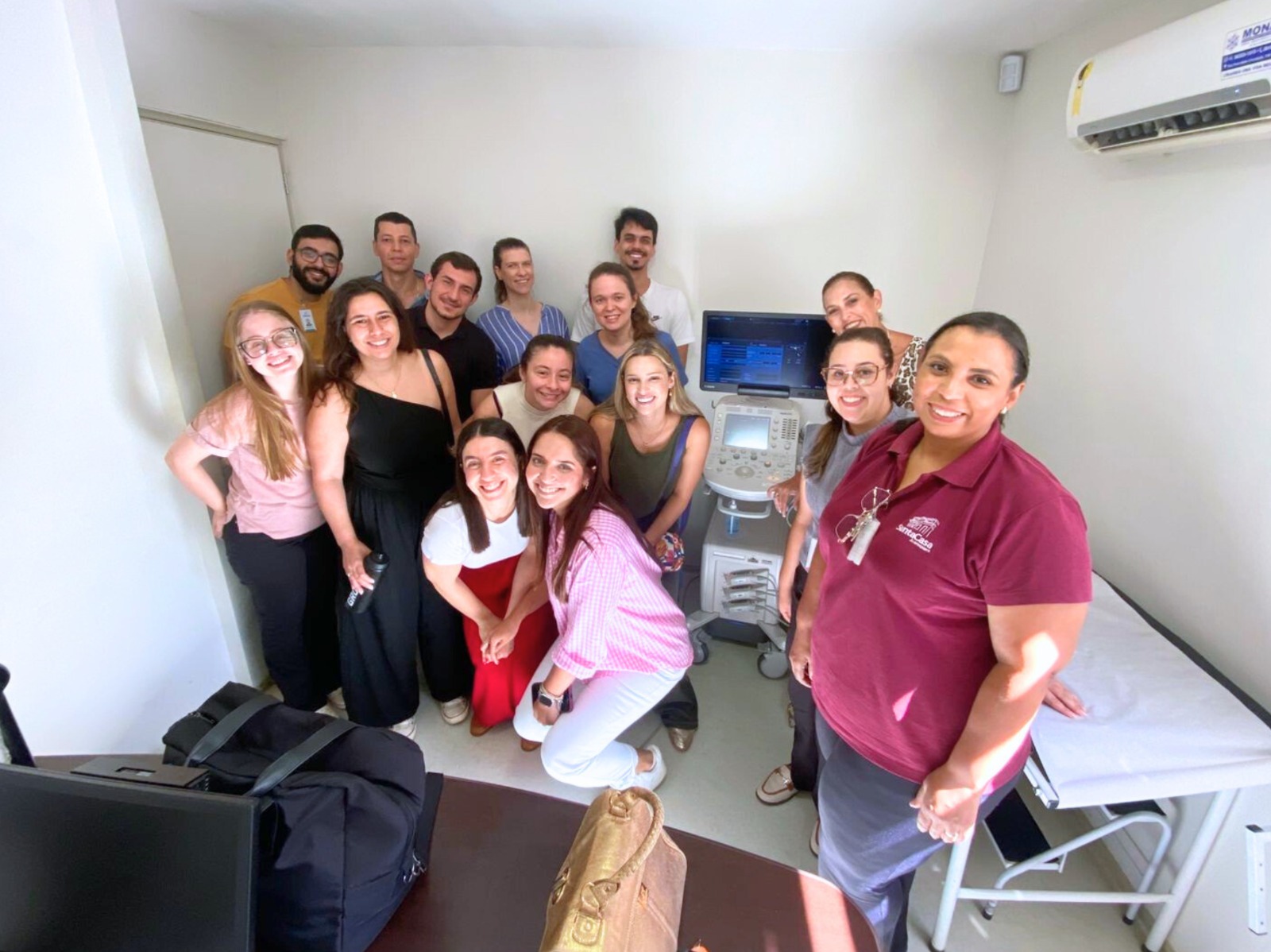 O treinamento foi sobre manuseio do aparelho de ultrassom para acessos venosos e procedimentos abdominais, com foco na segurança do paciente