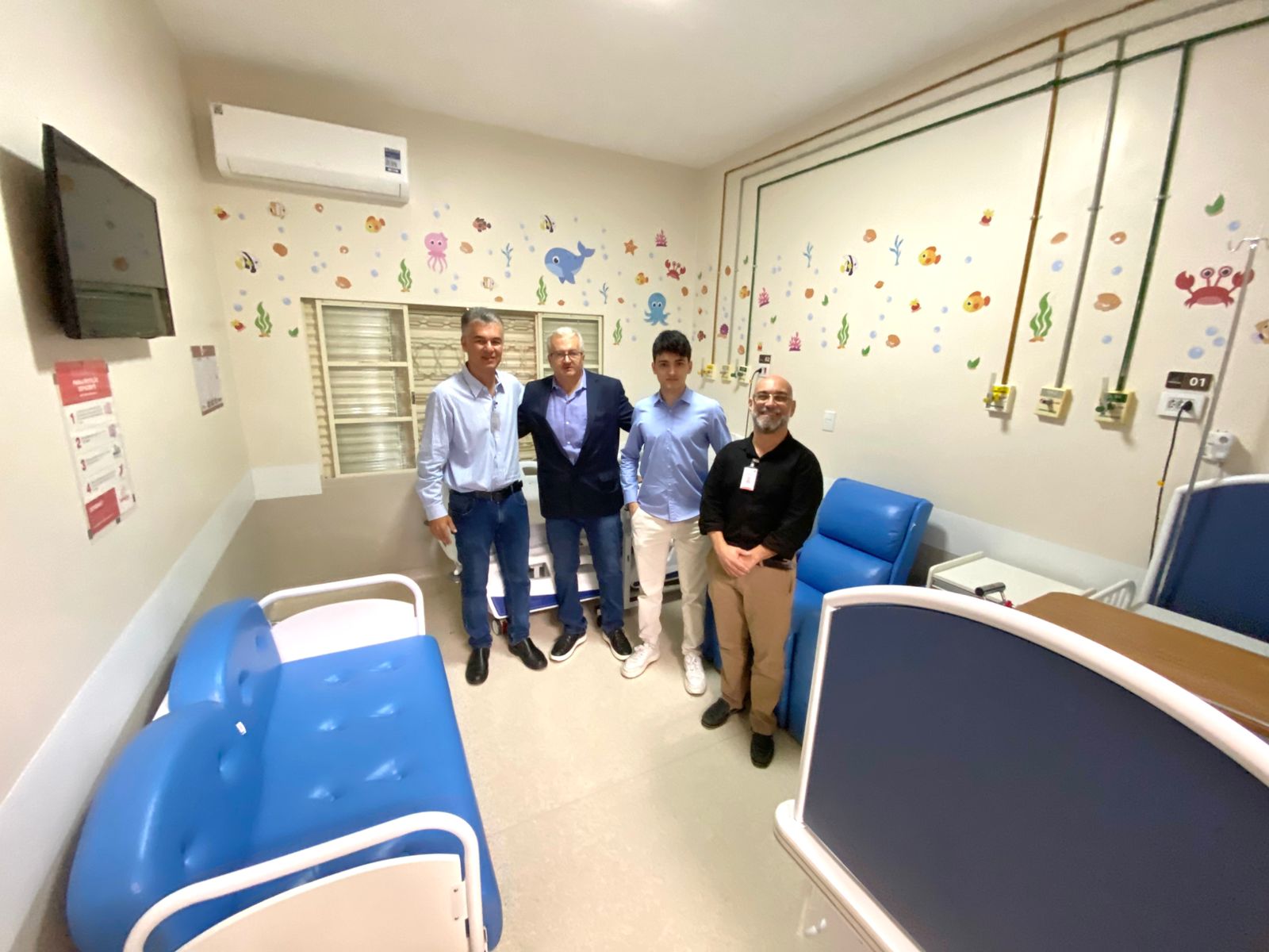 Na manhã do dia 4 de março, o provedor da Santa Casa Misericórdia de Araraquara, Jéferson Yashuda e o gerente de áreas/suprimentos, Valmer Vale receberam os representantes da empresa Med World, Airton Flávio dos Santos e Guilherme Mancini dos Santos para conhecerem a ala de pediatria do hospital, recém reformada.