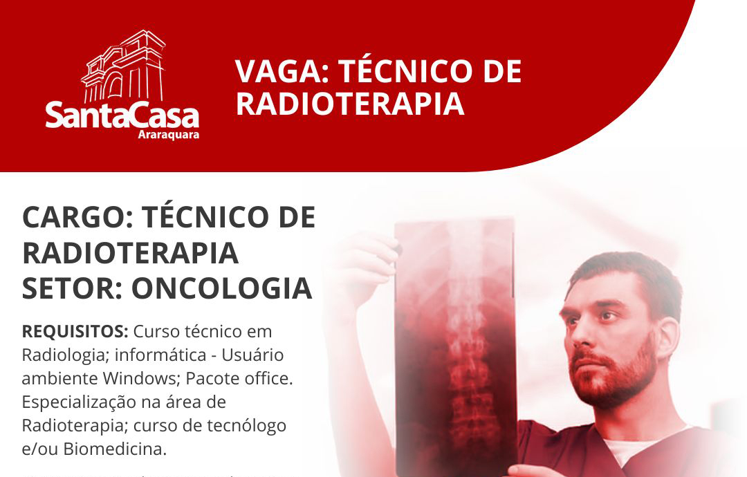 A Santa Casa de Misericórdia de Araraquara está recebendo currículos para o cargo de técnico em radiologia para o setor de oncologia.
