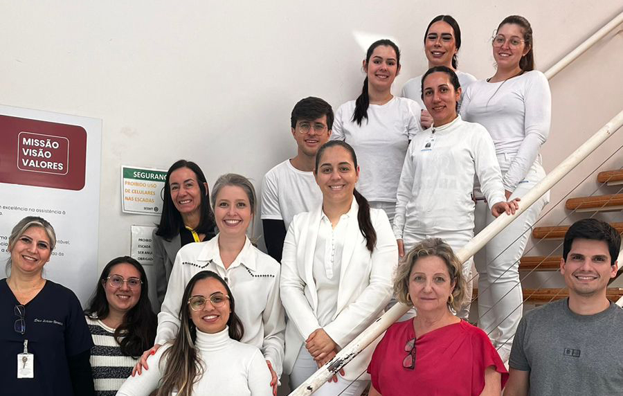 Além dos alunos, nesta reunião estiveram presentes também, os professores, a coordenação do curso de enfermagem, a coordenação do Centro de Ensino e Pesquisa, as coordenadoras de enfermagem da Santa Casa e também da gerente assistencial da instituição.