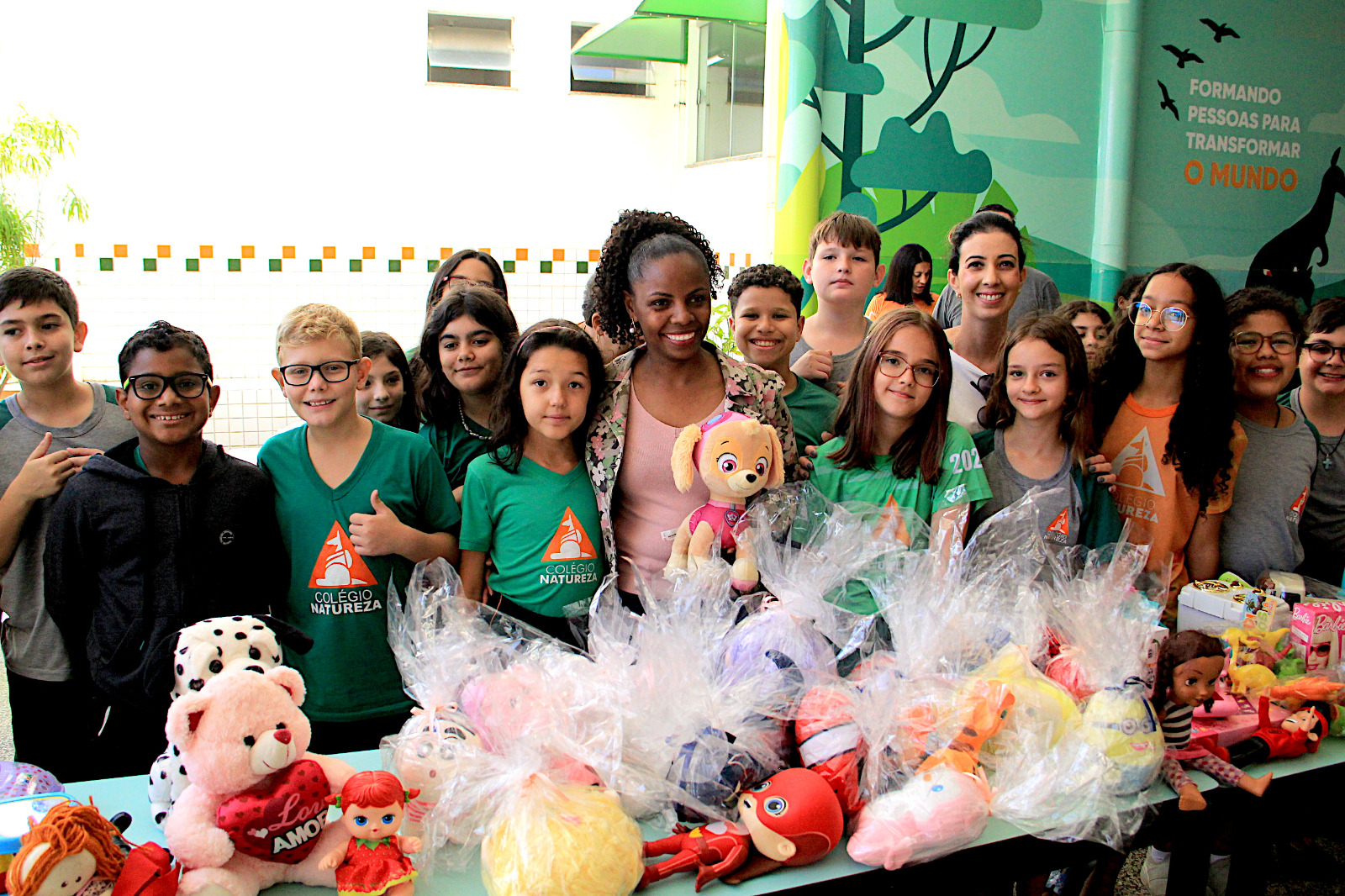 Na última quinta-feira (6), a vice-prefeita e secretária de Desenvolvimento Social, Meire Laurindo, e a subsecretária de Proteção Social, Ana Paula de Souza, estiveram no Colégio Natureza para participar da cerimônia de entrega de 310 brinquedos arrecadados em uma campanha realizada pelos alunos da instituição. A doação será direcionada para as três unidades do Programa Municipal de Acolhimento Institucional Provisório (PROMAIP), serviço que oferece acolhimento provisório para crianças e adolescentes.
