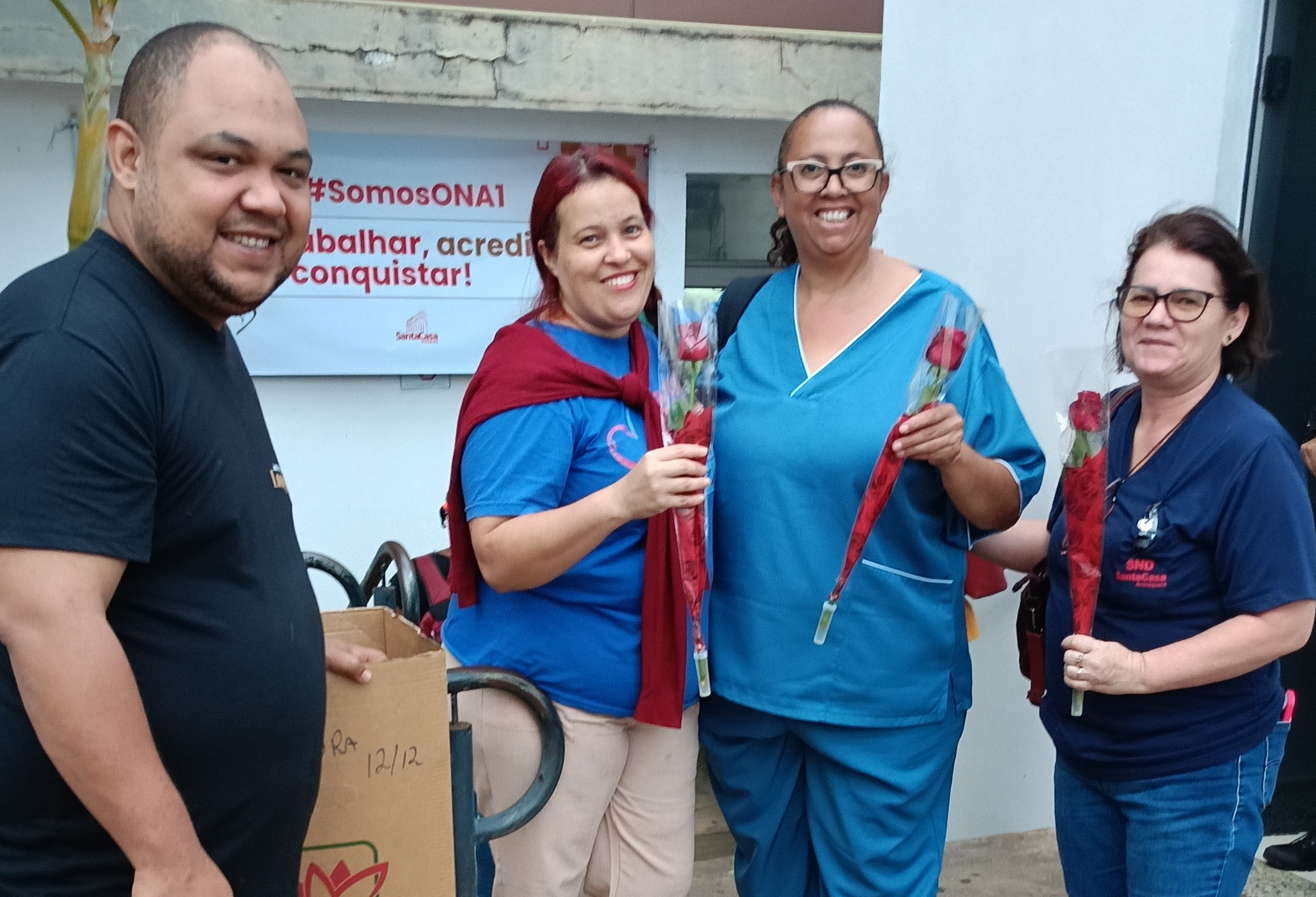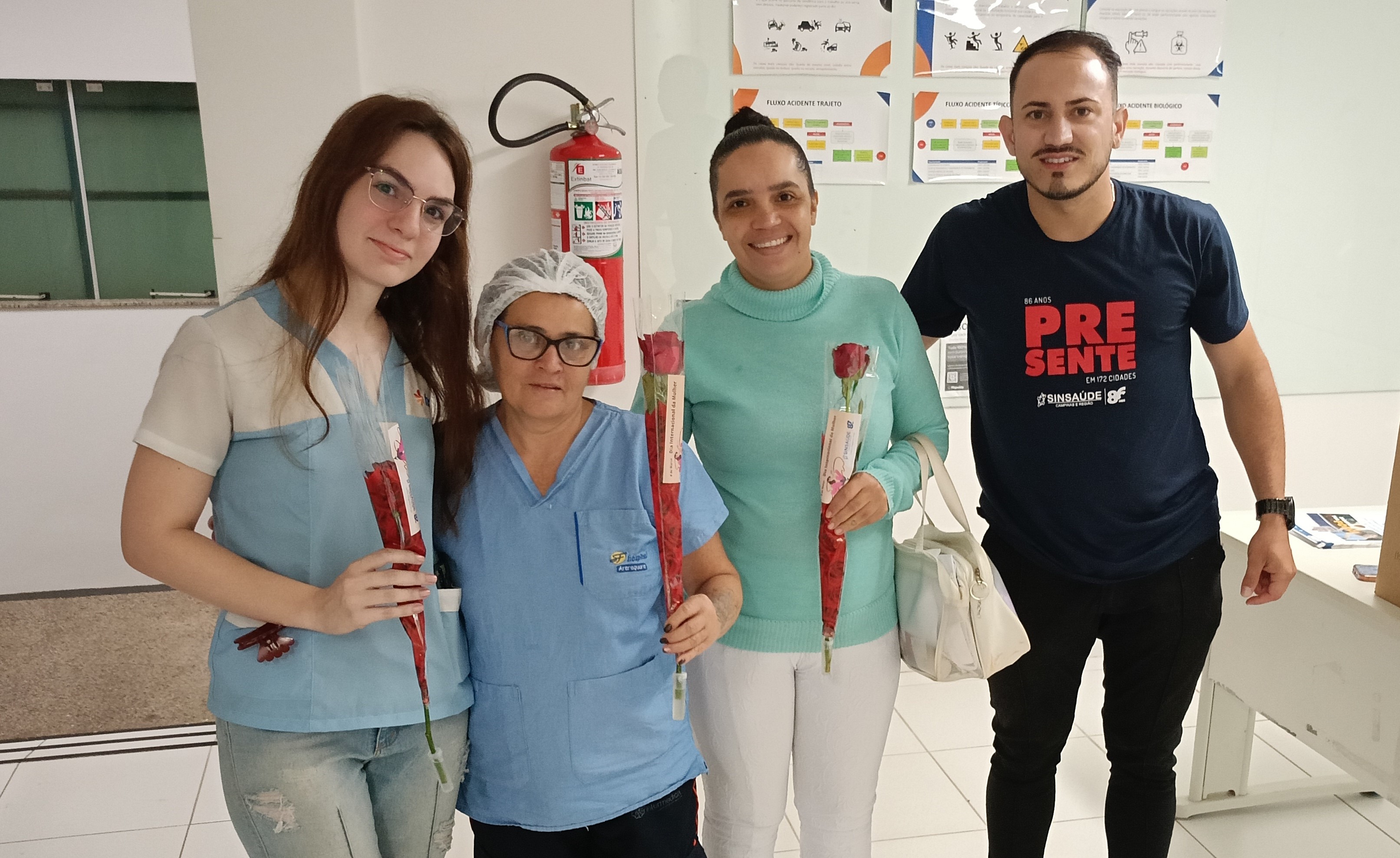 Na Subsede de Araraquara, diretores e funcionários do sindicato estiveram nas portas de hospitais, clínicas e laboratórios, saudando e entregando rosas vermelhas para celebrar a data junto às trabalhadoras da saúde.