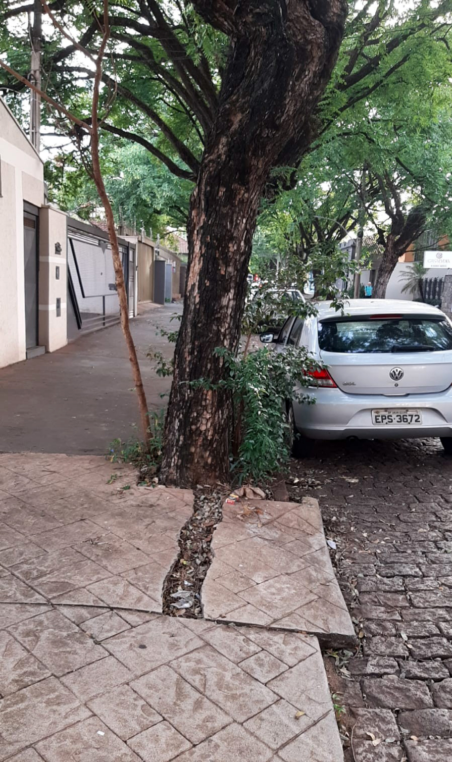 Veja novamente a situação das raízes das árvores e calçadas da Avenida Espanha, entre ruas 7 e 8 (Itália e Expedicionários do Brasil) e três árvores em um único buraco, só quebrando o concreto da calçada. Mas não deixem de ver a beleza e organização dos moradores da Avenida Feijó entre ruas 6 e 7 (Carlos Gomes e Itália), com o cuidado com suas árvores, o que deveria ser feito em toda a cidade.