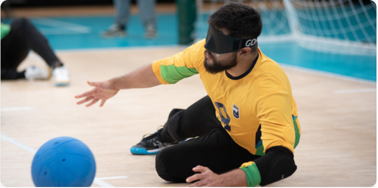 Treino aberto de Goalball com a participação de atletas amadores da cidade. Atividade realizada em parceria com a PARA DV (Associação para o Apoio e Integração do Deficiente Visual).